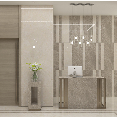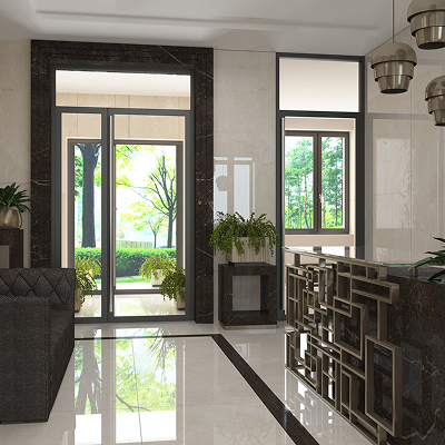 Для отделки использовались только натуральные материалы — мрамор и дерево. Для комфорта жителей вестибюль обустроен зоной отдыха с мягкой мебелью.